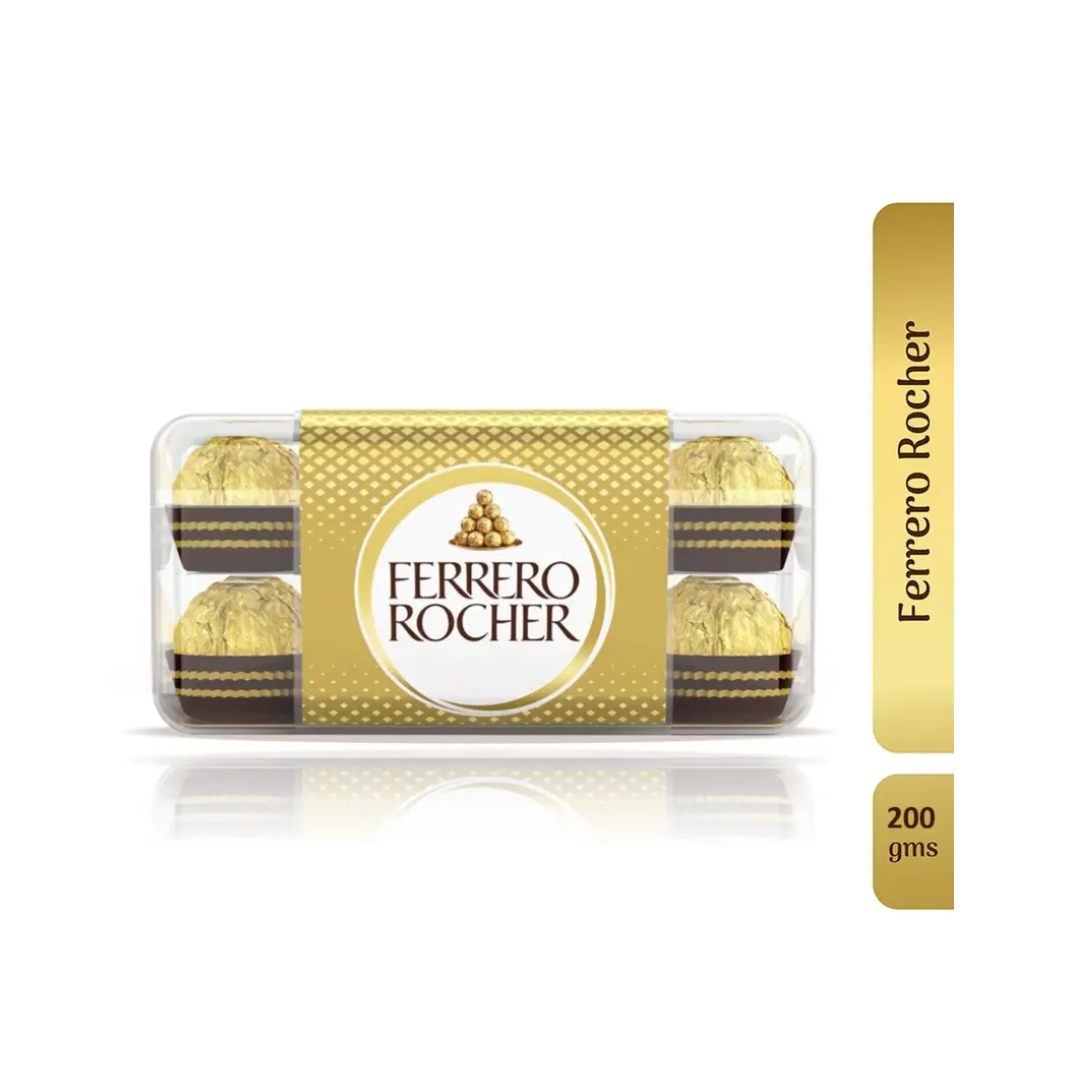 Indulge yourself in the rich taste of Ferrero Rocher Chocolate. With the goodness of smooth chocolate, crunchy nuts and wafers, this absolute delight is perfect to satisfy those sweet urges.